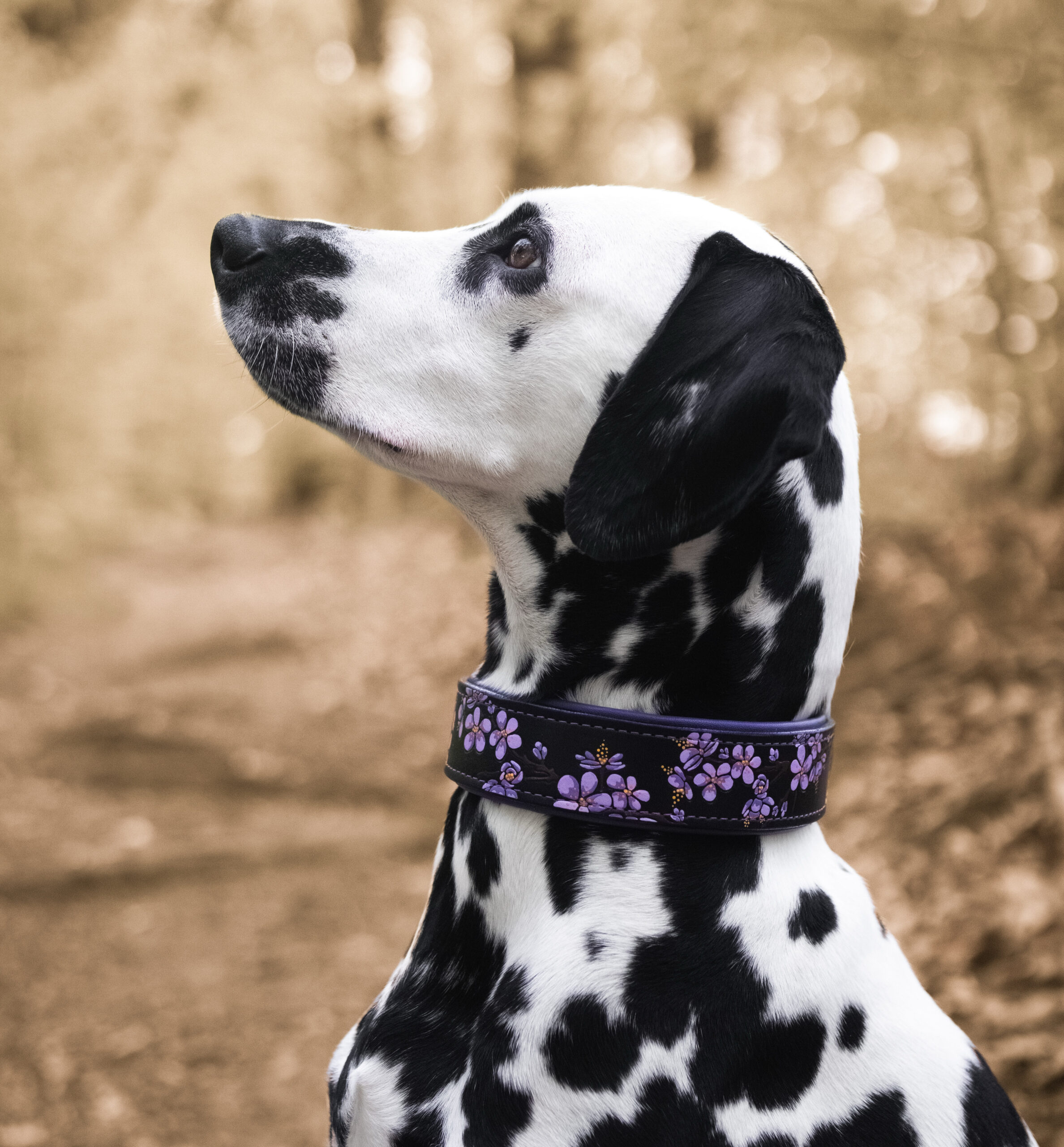 Unser bemaltes Halsband BLOSSOM fertigen wir aus Rindsleder in deiner Wunschfarbe.